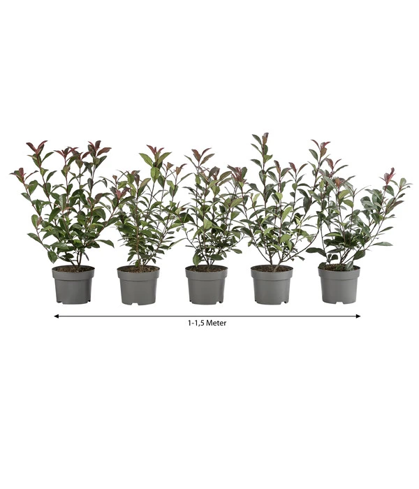 1-1,5 Meter Purpur-Glanzmispel ‚Carre Rouge‘, 5 x 2 Liter