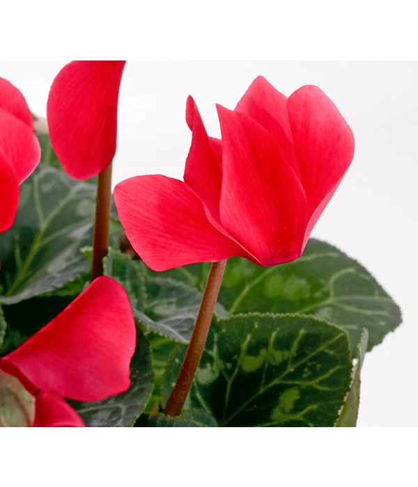 Hatte das Alpenveilchen bis vor wenigen Jahren das Image des Altmodischen, avanciert es seit einiger Zeit zur absoluten Modepflanze. Denn immer mehr Blumenfans haben Freude an dem nostalgischen Flair dieser schönen Zimmerpflanze. Sie hat große herzförmige Blätter mit einer hübschen weißen Zeichnung; die interessant geformten Blüten sitzen an langen Stielen und leuchten in allen Farbnuancen von Weiß über alle Rosa- und Rottöne bis hin zu Violett. Und weil passionierte Alpenveilchen-Liebhaber sich oft nicht entscheiden können, welche Blütenfarbe wohl die schönste ist, ergänzen sie ihr Blumenfenster mit immer neuen Exemplaren. Auf diese Weise erhält man einen kleinen Eindruck der unglaublichen Wirkung, die diese schöne Blütenpflanze ausstrahlt, wenn sie in der freien Natur ganze Blütenteppiche bildet. Solche beeindruckende Blütenfülle breitet das Alpenveilchen aber nicht in den Alpen aus, wie man angesichts des Namens meinen könnte, sondern in den Bergwäldern Griechenlands und der Türkei, an eher kühlen und teilweise schattigen Standorten. Und ähnliche Plätze bevorzugt die Pflanze auch in der Wohnung.