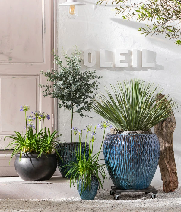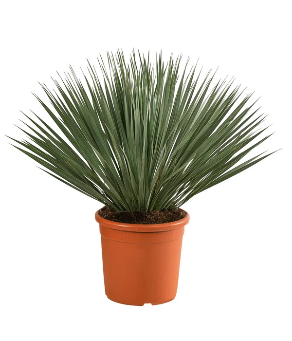 In dem Punkt sind sich ihre Fans einig: Die Yucca rostrata ist eine der schönsten Yuccas, die es gibt. Stolz präsentiert sie eine Fülle blau-silberner, feiner Blätter, die sich zu einer imposante Kugelkrone fügen. Diese wird immer dekorativer, je älter die Blaublättrige Palmlilie wird, denn parallel dazu wird der Stamm immer dicker und bildet einen markanten Kontrast zu den grazilen Blättern. Die in Texas und im nördlichen Mexiko beheimatete Pflanze erreicht am Naturstandort stattliche Höhen, in unseren Breiten ist die individuelle Wuchsfreunde abhängig von den jeweiligen Standortbedingungen. Das Besondere dieser Wüstenpflanze: Sie ist nicht auf das geschützte Klima unserer Wohnräume angewiesen, die Blaublättrige Palmlilie kann ins Gartenbeet gesetzt werden, denn sie ist sogar bedingt winterhart. Bereichern Sie Ihren Outdoor-Bereich gleich um diese immergrüne Schönheit – mit etwas Glück können Sie in einigen Jahren dann sogar auf prächtige, cremeweiße Blütenstände schauen!
