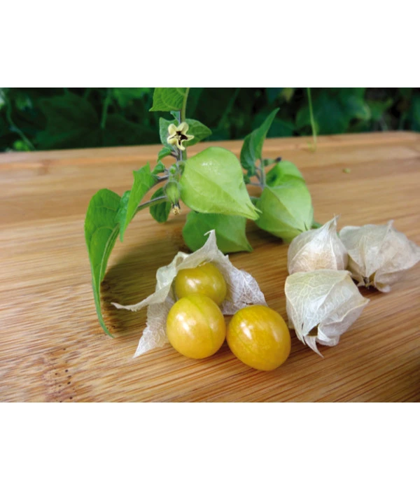 Sie ist zwar verwandt mit der Andenbeere, die grün-gelben Früchte der Ananaskirsche sind aber früher reif und deutlich süßer. Vor allem das feine Ananas-Aroma, das sich mit einem Hauch von Haselnuss verbindet, begeistert Gourmets immer wieder aufs Neue. Ebenso wie die Vielfalt der Zubereitungsmöglichkeiten. Sie können die kirschgroßen Beeren frisch verzehren, Sie können aber auch Marmeladen und Gelees davon kochen. Sogar trocknen kann man die Ananaskirschen. Und natürlich machen sich die dekorativen Früchte auch auf Desserttellern und Obsttorten ausgezeichnet. Doch nicht nur das spritzig-süße Geschmackserlebnis ist einmalig, auch die „Verpackung“ der Früchte in eine lampionartige Hülle ist außergewöhnlich.