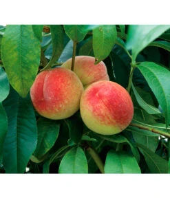 Die alte Sorte ‚Amsden‘ wurde bereits 1868 das erste mal in den USA gezüchtet. Sie gilt als sehr widerstandsfähig und robust, sogar gegen die Kräuselkrankheit. Es handelt sich um einen sehr stark wachsenden Baum, der eine sehr breite Krone bekommt und bis zu fünf Meter groß werden kann. Ab Mitte März kann man seine wunderschönen rosa Blüten bewundern. Diese verleihen der Pflanze, neben dem Nutzen, einen hohen Zierwert. Die Früchte reifen eher früh und in sehr großen Mengen. Sie sind klein mit einem hellen Fruchtfleisch. Die Schale ist gelb mit roter Marmorierung auf der Sonnenseite. Auch der Stein ist eher klein, im Gegensatz zu anderen Sorten. Geschmacklich ist ‚Amsden‘ sehr zu empfehlen, da sie sehr süß schmeckt und dabei saftig ist. Der Pfirsich eignet sich hervorragend zum Frischverzehr, als auch zum Einmachen oder als Garnitur bei jeglichen Süßspeisen, wie Kuchen oder Eis.