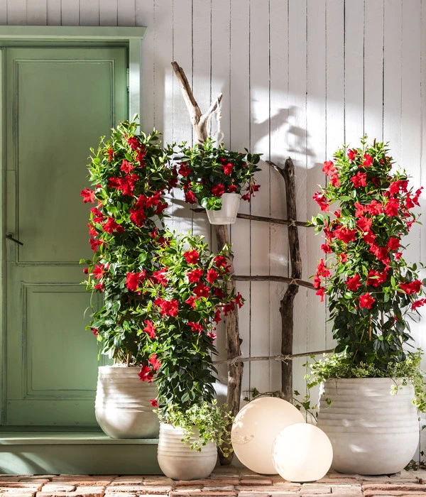 Sie lieben diese farbintensive Blütenpracht? Dann machen Sie eine wahre Blüten-Oase aus Ihrer Terrasse! Wählen Sie die schönsten Farben der Dipladenie in Pyramidenform für sich aus und arrangieren Sie diese im Wechsel mit Blauer Mauritius und Drillingsblume. Wenn all diese farbenfroh blühenden Schönheiten sich so richtig in Schale geworfen haben, werden Sie auf Ihrer Terrasse tagtäglich das perfekte Urlaubs-Feeling erleben!