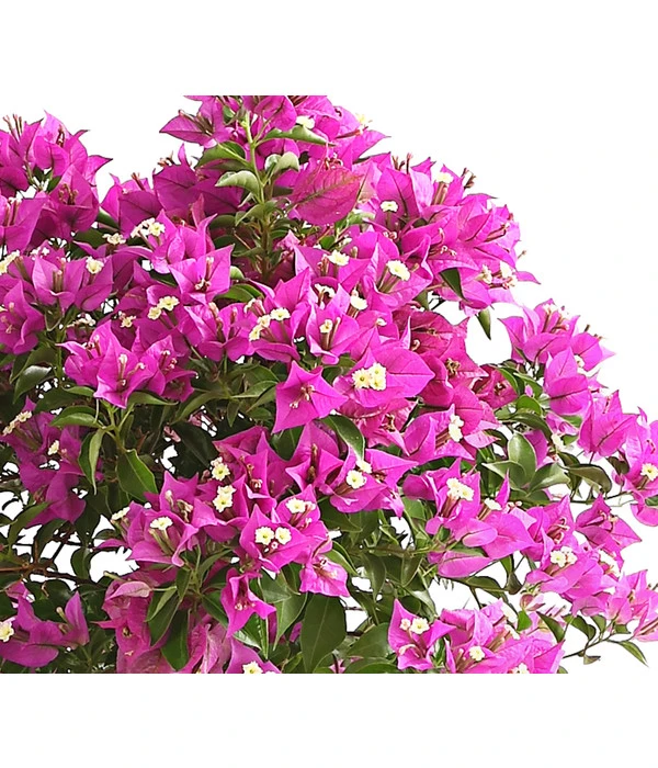 Wohl kaum eine andere Pflanze erinnert so sehr an Urlaub in südlichen Gefilden wie die Bougainvillee. Mit ihren üppigen Blüten zaubert sie im Nu mediterranes Flair auf Ihren Balkon und die Terrasse. Die Farbenpracht der Drillingsblume, wie sie aufgrund ihrer Blütenform auch genannt wird, zeichnet sich durch ein kräftiges Pink-Violett aus. Da die Bougainvillee in Brasilien beheimatet ist, bevorzugt das Stämmchen einen vollsonnigen Standort. Wird dieser Wunsch erfüllt, lässt sie Ihren Garten mit ihren cremeweißen, von den leuchtenden Hochblättern umgebenen Blüte von Mai bis August erstrahlen. Die Kombination aus eirunden bis lanzettförmigen Blättern und der leuchtenden Farbe der Blüten, die hoch oben auf dem Stämmchen sitzen, macht sie zu einer beliebten Kübelpflanze, die noch dazu vielfältige Einsatzmöglichkeiten bietet.