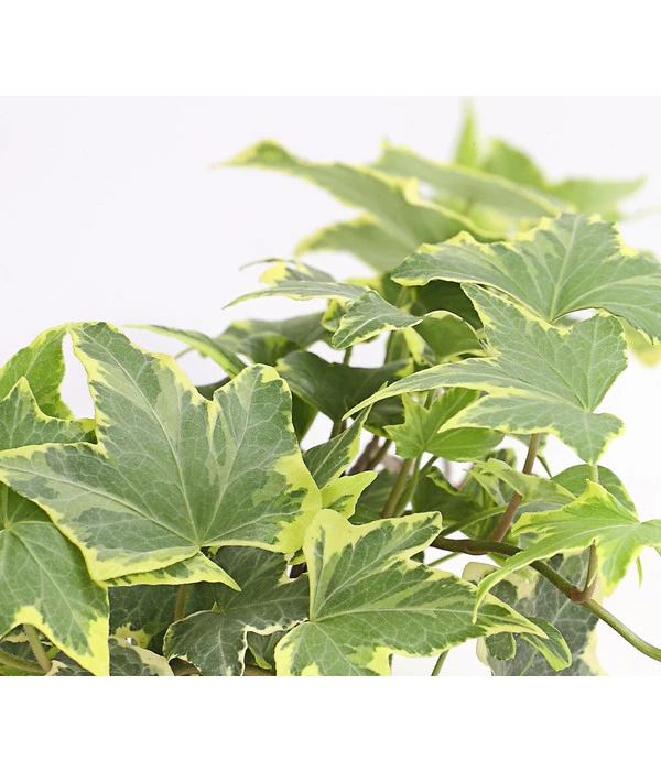 Gezackt, rundlich oder herzförmig, hellgrün, dunkelgrün oder mittelgrün, mit weißem Rand oder sonnengelb panaschiert – die Bandbreite der Varianten ist allein bei Hedera helix mit inzwischen ca. 400 Sorten fantastisch. Dadurch eröffnet sich dem Gärtner eine Fülle abwechslungsreicher Gestaltungsmöglichkeiten mit dem beliebten immergrünen Bodendecker. Halt! Auch das mit dem Bodendecker ist nur ein Teil der Wahrheit. Richtiger muss es wohl heißen, dass Efeu einen kaum zu bremsenden Ausbreitungsdrang hat und zwar in der Horizontalen wie in der Vertikalen, also nah am Boden oder dem Himmel entgegen. Lassen auch Sie sich von den verschiedenen Sorten Efeu, die wir Ihnen hier anbieten, inspirieren und bereichern Sie Ihren Garten mit diesem wertvollen und dabei so unglaublich robusten und pflegeleichten Multitalent.