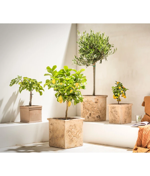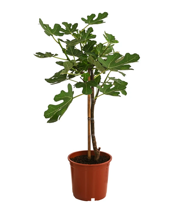 Der Feigenbaum ist ein Baum mit einer alten Kulturgeschichte. In der Antike galt er als Symbol der Fruchtbarkeit, des Reichtums und der Sinnenfreuden. Und noch heute kennzeichnet der Feigenbaum neben Oliven, Wein und Mandeln das Landschaftsbild im Mittelmeerraum. Sind es auf den ersten Blick die dekorativ geformten, außergewöhnlich großen Blätter, die die Aufmerksamkeit auf sich lenken und jahrhundertelang die berühmtesten Künstler dazu bewogen haben, die Blöße ihrer Objekt damit zu bedecken, so sind auch die leckeren Früchte mehr als einen Blick und Biss wert. Mit dieser Feige in hübscher Stämmchen-Form haben Sie jetzt die Möglichkeit, beides auf Ihrer Terrasse, dem Balkon oder dem Garten zu genießen: den prachtvollem Blätterschmuck wie die süßen Früchte dieses mediterranen Bäumchens.