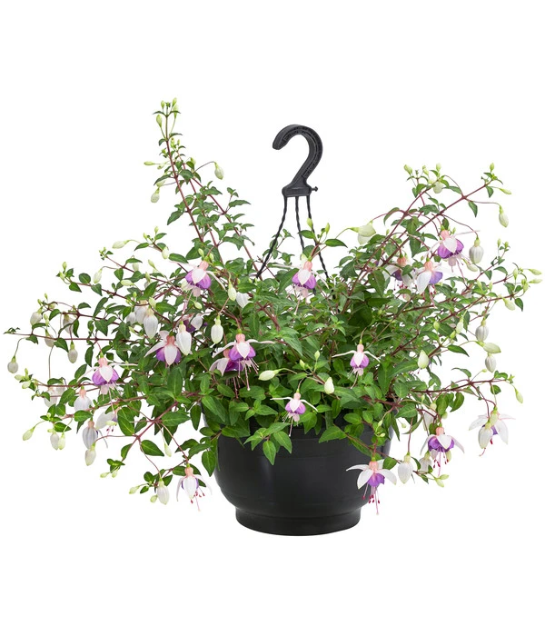 Wenn prächtige Sommerblumen ihre Triebe elegant über den Rand einer Pflanzenampel hängen lassen, verbreiten sie sofort Sommer-Feeling pur. Sie suchen noch weitere Hängepflanzen, die Sie zusammen mit diesen Hängefuchsien kombinieren können? Weitere Schattenliebhaber sind zum Beispiel Lobelien, Fleißige Lieschen und Schneeflockenblumen, aber auch mit Blattschmuckstauden wie Funkien und Buntnesseln können Sie dekorative Effekte in Zusammenspiel mit der Hängefuchsie erzielen.
