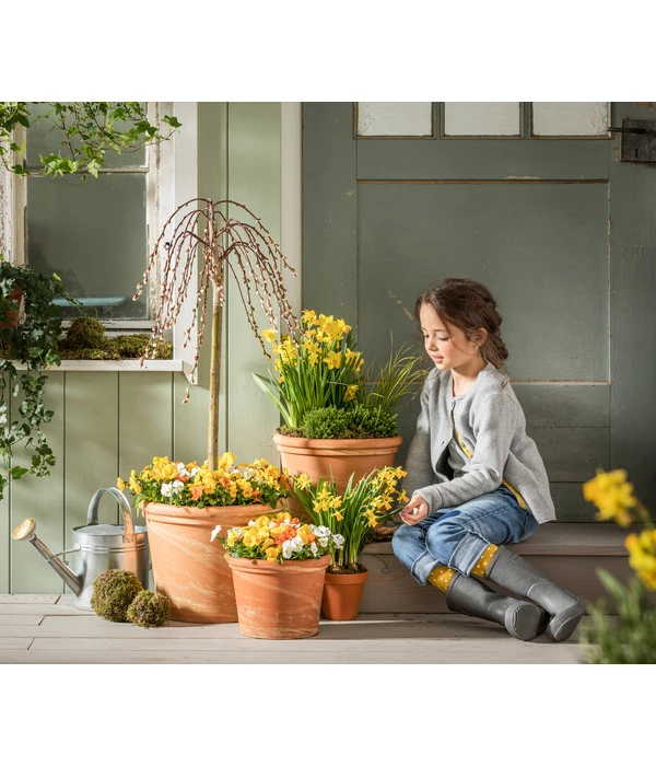 Nach einem kalten und grauen Winter sehnen wir uns alle nach Sonnenschein, wärmeren Temperaturen und Blüten in leuchtenden Farben. Deshalb spielen früh blühende Pflanzen eine so wichtige Rolle – für den Garten und für unsere Stimmung! Aber glücklicherweise gibt’s ja die hübschen Hornveilchen, die wir Ihnen hier als echtes Gute-Laune-Trio anbieten. Wie Sie ja wissen, sind Hornveilchen die kleineren Schwestern der Stiefmütterchen, aber trotz ihrer zierlicheren Blüten stehen sie den Stiefmütterchen in nichts nach. Oder gehören Sie zur Gruppe der Blumenfans, die schon dem nostalgischen Charme der Hornveilchen verfallen sind und kein Jahr ohne diese Frühlingsblüher erleben möchten? Dann warten Sie nicht länger und holen sich dieses bezaubernde Hornveilchen-Trio, das Sie mit gleich drei strahlenden Blütenfarben in einem Topf erfreut!