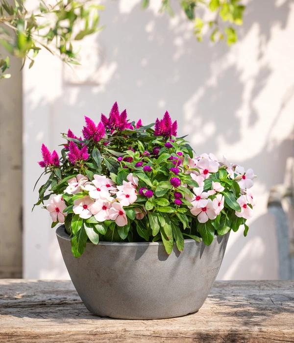 Unzählige kleine Einzelblüten stehen in kompakten Kugeln über hellem Laub und locken die Blicke der Betrachter auf sich – der Kugelamaranth ist eine attraktive Sommerblume, die im Beet wie im Balkonkasten farbenfrohe Akzente setzt. Die hübschen Blüten, mit denen sich die Pflanze von Juni bis September schmückt, zeigen sich in Weiß, Orange, Rot, Rosa und Violett. Mit dem Kugelamaranth genießen Sie den Blütenzauber einer nicht ganz alltäglichen Sommerblume, die aber erfreulich pflegeleicht ist. Sie eignet sich zur Bepflanzung von Beeten ebenso wie für Töpfe und Blumenkästen. Noch ein Tipp: Wenn Sie genügend Platz im Garten haben, setzen Sie am besten gleich mehrere Pflanzen, denn die Beet- und Balkonpflanze wird sich auch als eine ausgezeichnete, lange haltbare Schnittblume in sommerlichen Blumensträußen erweisen.