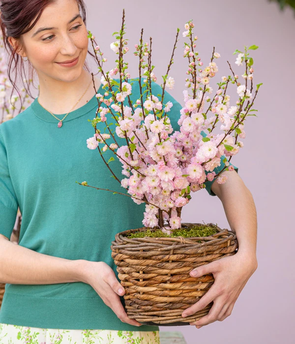 Mandelbäume stammen ursprünglich aus Westasien, wo sie zu stattlichen Bäumen heranwachsen und uns die leckeren Mandeln schenken. Auch die Ziermandel, die wir Ihnen hier empfehlen, möchte unbedingt einen warmen, sonnigen Standort in Ihrem Garten. Der Boden sollte humos, nährstoffreich, kalkhaltig, feucht und durchlässig sein. Ganz wichtig für die Blütenfülle im nächsten Jahr ist der Rückschnitt nach der Blüte. Schneiden Sie dabei die verblühten Triebe bis ins alte Holz zurück. Über den Sommer sollten Sie das Bäumchen regelmäßig wässern, Staunässe dabei aber vermeiden.