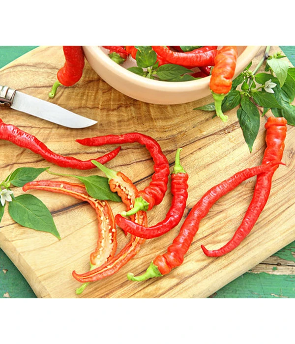 Diese milde Peperoni wächst zu einem stattlichen Busch heran und kann gut als Kübelpflanze auf dem Balkon oder der Terrasse stehen. Mit den Früchten können Sie hervorragend Soßen verfeinern oder sie als Pizzabelag verwenden. Kann auch vereinzelt schärfere Schoten hervorbringen.