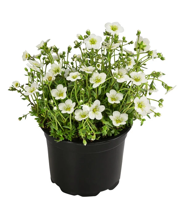 Der Steinbrech gehört zur Familie der Steinbrechgewächse, von denen es weltweit etwa 450 Arten gibt. Manche wachsen höher, manche bleiben niedrig, aber alle sind ausdauernde Pflanzen mit einem schön dichten, polsterförmigen Wuchs. Die bei uns beliebteste Sorte ist der Moos-Steinbrech, der ein flaches, moosartiges Blattpolster entwickelt und sich im April und Mai mit einer Fülle zarter Blütensterne in strahlendem Weiß oder leuchtendem Rosa schmückt. Bis zu 20 cm hoch können sich die grazilen Stängel über das Blattwerk erheben und ihre kleinen Blüten dem Betrachter entgegen recken. Der Moos-Steinbrech eignet sich besonders als Bodendecker-Staude in Steingärten, gedeiht aber auch in Staudenbeeten und kann eine pflegeleichte Grabbepflanzung reizvoll ergänzen.