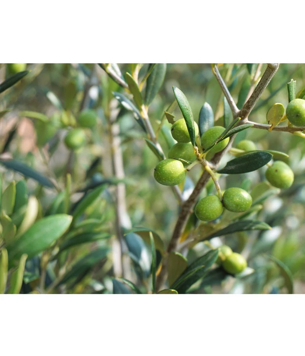 Doch dieses Oliven-Hochstämmchen kann mehr als nur dekorativ aussehen. Was man bei seinen Sommerurlauben in Italien, Griechenland und Spanien, den Olivenproduzenten schlechthin, oft gar nicht sieht: im August schmückt sich der Olivenbaum mit einer Fülle wohlriechender Blüten. Die Früchte die sich daraus entwickeln, wissen wir dann allerdings wieder sehr zu schätzen: grün oder schwarz, in Salzlake oder Kräuteröl eingelegt, auf der Pizza oder zum Braten und natürlich als „flüssiges Gold“, dem Olivenöl.