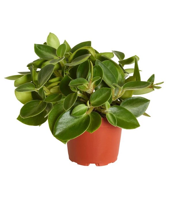 Die Peperomie gehört zur Gattung der Pfeffergewächse, deshalb ist sie vielen auch unter den Namen Zwerg- oder Zierpfeffer bekannt. Es gibt unzählig viele verschiedene Arten dieser Pflanzengattung und eine jede hat ihren ganz eigenen Look. Von dunklem Grün bis hin zu rostigem Rot oder auch im zweifarbigen Gewand – die Peperomia hat alles im Repertoir. Doch nicht nur in Hinsicht der Farbe zeigt sie sich enorm vielfältig, auch bei der Blattform bzw. -struktur hat man eine reiche Auswahl: von klein und rund oder lang und spitz, dünn bis fleischig dick, glatt oder gerunzelt. Die eiförmigen, limettengrünen Blätter der Sorte ‚Pixie Lime‘ sitzen auf kurzen Stielen und sind dank ihrer leicht sukkulenten, fleischigen Blätter sehr dankbare Zimmerpflanzen.
