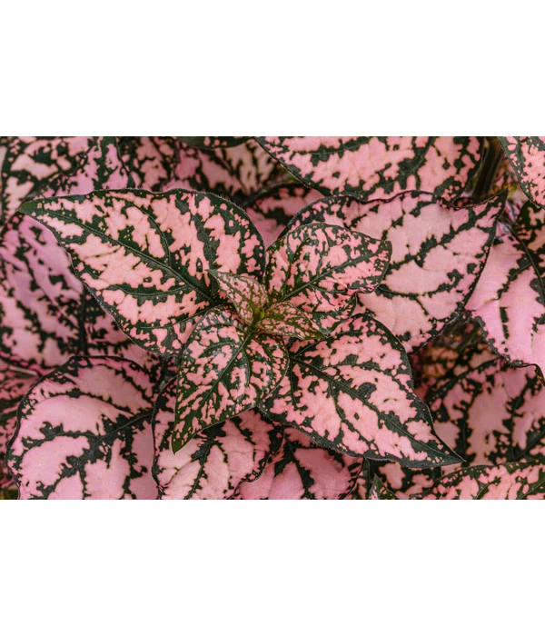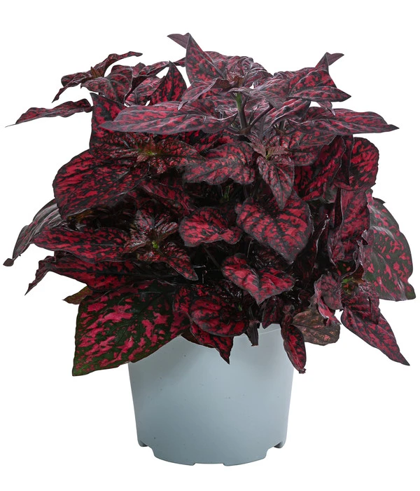 Sie haben diese Pflanze noch nie gesehen? Kein Wunder, denn diese botanische Rarität ist im Moment nicht in vielen Gärtnereien oder Gartencentern zu finden. Dabei gibt sich die aus Madagaskar stammende Pflanze große Mühe, die Aufmerksamkeit der Betrachter zu wecken. Mal zeigt sie ihre grünen Blätter mit roséfarbenen Tüpfeln geschmückt, mal mit roten Punkten verziert – ein so kontrastreiches, aufregendes Farbspiel, dass sich manche Blühpflanze anstrengen muss, mitzuhalten. Noch eine Info, die Ihnen gefallen wird: Die Blattschmuckpflanze ist zwar eine exotische Schönheit aber kein komplizierter Charakter, der aufwendige Pflegemaßnahmen erwartet. Klingt gut? Dann laden Sie die Punktblume ‘Hippo‘ gleich zu sich nach Hause ein – sie wird sich im Sommer auch in Kübeln und Kästen im Outdoor-Bereich hervorragend machen.