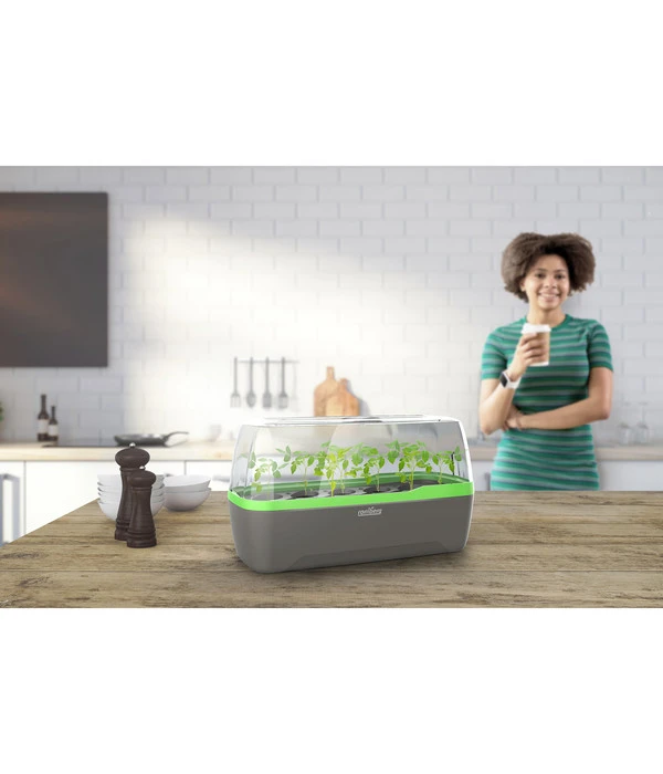 Sie leben in einer Wohnung ohne Außenflächen, möchten aber dennoch Ihren grünen Daumen walten lassen? Mit dem BoQUBE Gewächshaus eröffnet sich allen Pflanzenfreunden eine neue Welt. BoQUBE ist nämlich Gewächshaus und Pflanzkasten in einem. Dabei passt das geschwungene Gefäß mit seiner angenehmen Größe in jedes noch so kompakte Zimmer und findet beispielsweise auf einem Regal oder der Anrichte seinen angestammten Platz. Mittels der Romberg Quelltabletten und dem jeweiligen Saatgut züchten Sie Ihre Kräuter oder Ihr Lieblingsgemüse im Pflanzkasten inmitten Ihrer vier Wände.
