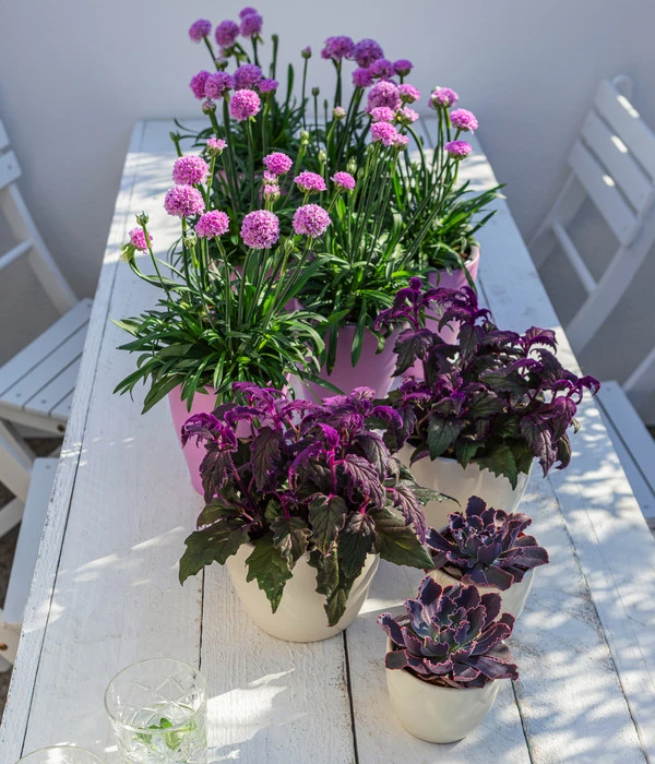Wenn Sie Indonesien oder speziell die Inseln Java und Sulawesi schon bereist haben, konnten Sie die Gynure vielleicht schon in freier Natur bewundern. Sie wächst dort als Halbstrauch mit überhängenden Trieben und zählt zur Familie der Korbblütler, ist somit weitschichtig mit den Chrysanthemen verwandt. Ins Auge fällt die Samtpflanze wegen ihrer besonders exotischen Optik: sie hat große, gezähnte Blätter, die überzogen sind mit einem feinen Flaum in leuchtendem Violett. Im späten Herbst oder im Frühjahr kann die Zimmerpflanze orangefarbene Blüten bekommen. Das ist ein weiterer extravaganter Blickfang, denn durch die violette Blattrandung sticht das helle Orange besonders heraus. Doch der Duft den die Blüten verbreiten ist nicht jedermanns Geschmack, notfalls sollten Sie diese noch vor dem Öffnen abknipsen.
