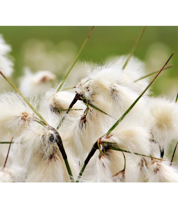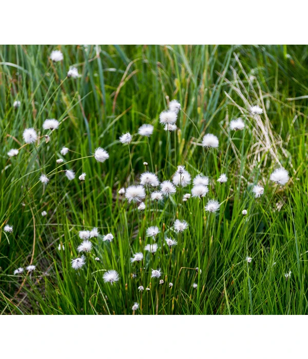 Wer schon einmal in einer typischen Moorlandschaft unterwegs war, hat diese interessante Pflanze vielleicht schon in ihrer natürlichen Umgebung bewundern können. Ein Schmalblättriges Wollgras fällt nämlich sofort durch seinen ungewöhnlichen Kopfschmuck auf. Dabei sind es nicht die Blüten selbst, sondern die weißen Blütenhüllfäden, die den wuscheligen Schopf des Wollgrases bilden und die Staude für mehrere Monate zu einem Hingucker am Gartenteich machen. Schmalblättriges Wollgras gehört zur Familie der Sauergräser und ist auf der ganzen nördlichen Halbkugel zu finden. Es besiedelt Moore sowie feuchte Kiefern- und Birkenbruchwälder und ist inzwischen auch schon wieder in renaturierten Feuchtgebieten zu finden. Ein Schmalblättriges Wollgras, wie diese Staude von Dehner, gehört nämlich zu den sogenannten Repositionspflanzen, die in der Lage sind, schädliche Verbindungen wie Nitrite, Phosphate u.ä. aufzulösen und auf diese Weise das Wasser zu reinigen. In privaten Gartenteichen aber wird ein Schmalblättriges Wollgras hauptsächlich aufgrund der lustigen Wollbüschel geschätzt.