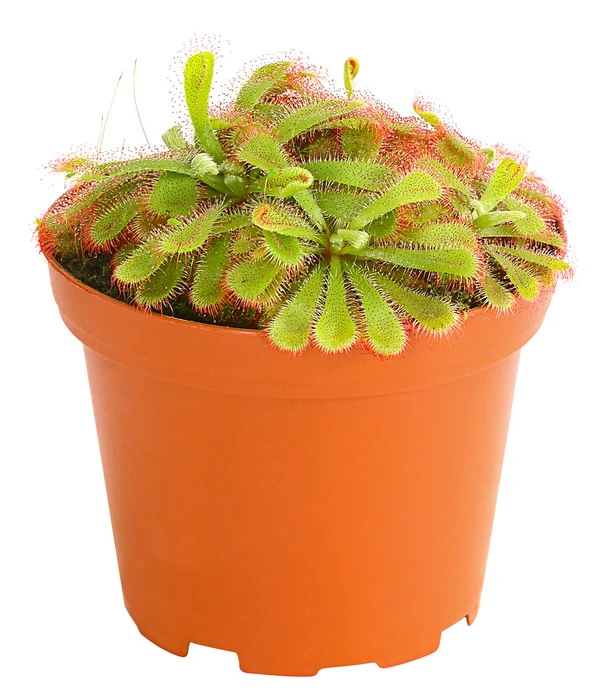 Da die Fleischfressende Pflanze nicht nur Wärme, sondern auch eine hohe Luftfeuchtigkeit braucht, empfiehlt sich ein Terrarium als Pflanzgefäß, denn das bietet bei richtiger Handhabung beste klimatische Voraussetzungen für ein gesundes Wachstum. In dem Glasgefäß kann die Luftfeuchtigkeit leichter bei 50-70% gehalten werden und diese Luftfeuchtigkeit braucht der Sonnentau, um den Klebstoff für seine Fallen zu bilden. Eine große Auswahl an Terrarien und praktisches Zubehör finden Sie gleich hier im Online Shop.
