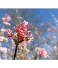 Wer einen Zierstrauch wie den Winter-Schneeball ’Dawn’ zu sich in den Garten einlädt, wird diese Entscheidung nie bereuen. Denn dieser Blühstrauch wird das Ensemble Ihrer Gartenpflanzen um mehr als eine Facette bereichern. Da ist erst einmal der ungewöhnliche Blütezeitpunkt. In der Regel präsentiert er seine prächtigen, roséfarbenen Blütenrispen von Februar bis April. Manchmal überrascht er uns aber schon im November und Dezember mit seinem Blütenflor, der den Garten außerdem mit einem intensiven, sehr angenehmen Duft erfüllt. Da es sich bei dem Winter-Schneeball ’Dawn’ um ein sommergrünes Ziergehölz handelt, lenken keine Blätter von dem Blütenmeer ab und blühende Konkurrenz ist im kargen, winterlichen Garten auch nicht zu befürchten. Den Sommer über zeigt sich der aufrechte, dichtbuschige Strauch im Schmuck sein dunkelgrünen, lanzettlichen Blätter bis er sich im Herbst mit einer prächtigen Laubfärbung in Rot bis Dunkelviolett erneut energisch in den Blickpunkt rückt.