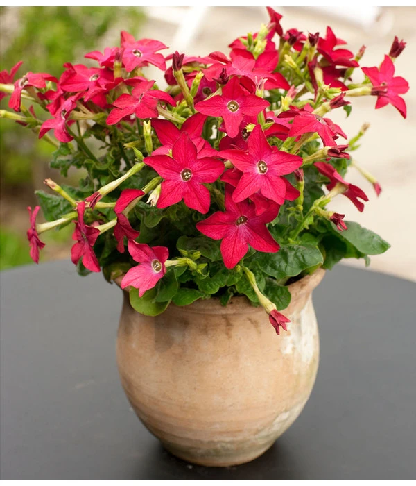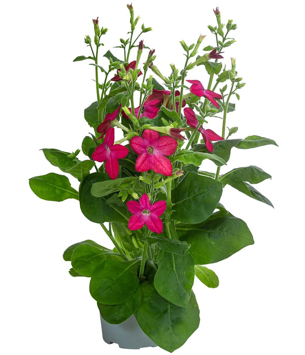 Der Ziertabak gehört zu den eindrucksvollsten Beet- und Rabattenpflanzen, der sowohl mit wunderschönen Blüten wie mit einer beeindruckenden Blühpower auf sich aufmerksam macht. Die sternförmigen Blüten verfügen über eine faszinierende Leuchtkraft und schmücken Gärten, Balkone und Terrassen von Mai bis Oktober. Bei Dehner finden Sie die Pflanze in verschiedenen Blütenfarben. Wenn Sie sich nicht entscheiden können, welche die Schönste ist, dann nehmen Sie doch alle und tauchen im Sommer in ein pink-rosa-weißes Blütenmeer! Die Blätter des Ziertabaks sind lanzettförmig und bilden einen dekorativen Kontrast zu den Sternenblüten, eignen sich aber trotz des Pflanzennamens nicht für die Tabakherstellung. Die einjährige Garten- und Balkonpflanze hat einen buschigen, kompakten Wuchs und erreicht eine Wuchshöhe von maximal 40 cm.