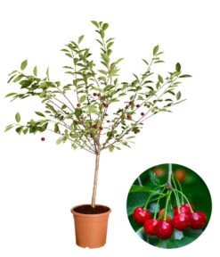 Sie haben zu wenig Platz, um sich Obstbäume anzupflanzen? Sie wollen trotzdem Obst aus dem eigenen Garten? Dann holen Sie sich jetzt die Zwergsauerkirsche ‚Griotella‘ zu sich nach Hause. Die Zwergkirsche ist langsamwachsend und bleibt sehr klein. Durch ihre besondere Wuchsform ist sie perfekt für die Kübelhaltung auf Balkon oder Terrasse geeignet. Sie ist platzsparend und bringt trotzdem sehr gute Erträge. Ihre Früchte sind knackig, rot und säuerlich. Geerntet werden diese Mitte bis Ende Juli. Da es sich um eine selbstbefruchtende Pflanze handelt, wird keine zweite Befruchterpflanze benötigt.
